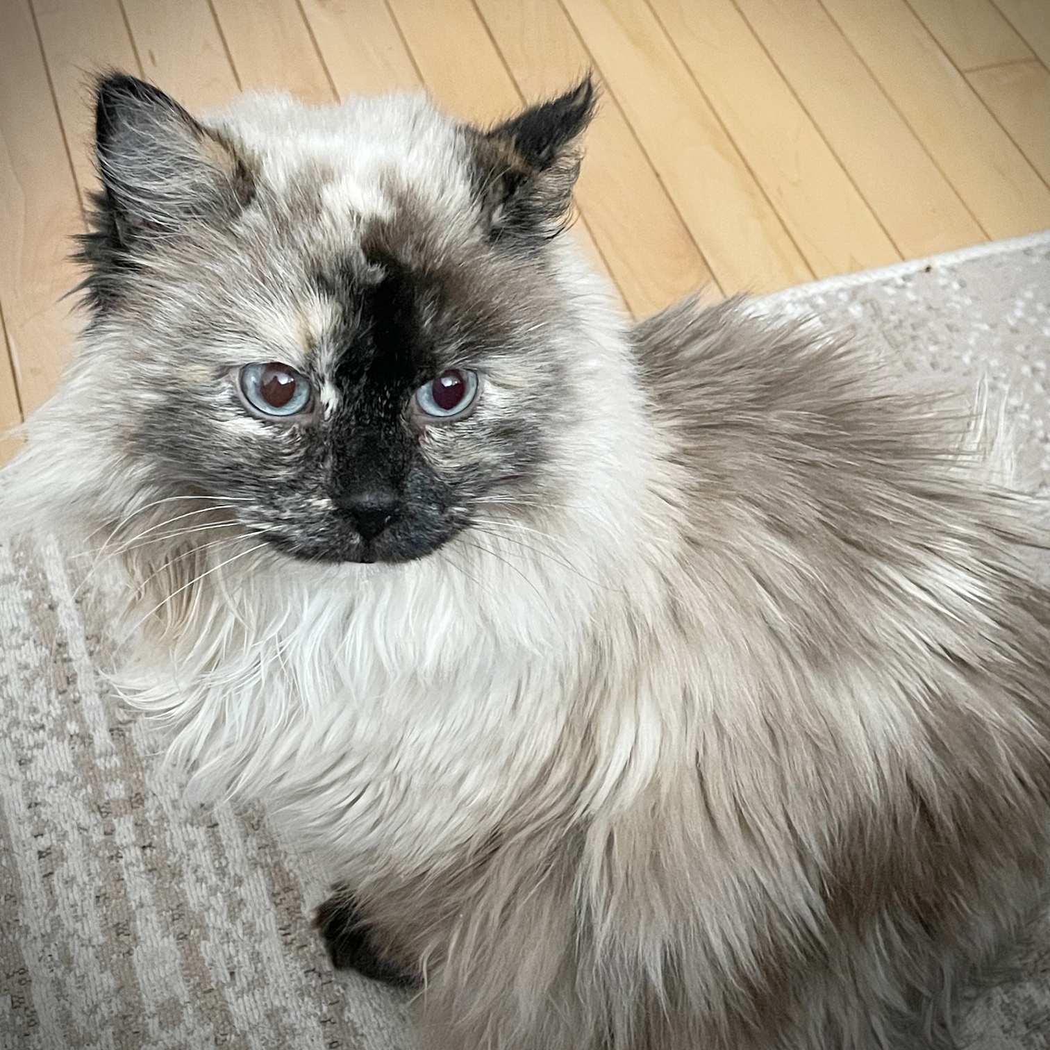 Hi! I'm SNOWY MOON (DOB: 09/27/2021), a female Seal Point Mitted Ragdoll. Unfortunately, my owner felt like my family, because...