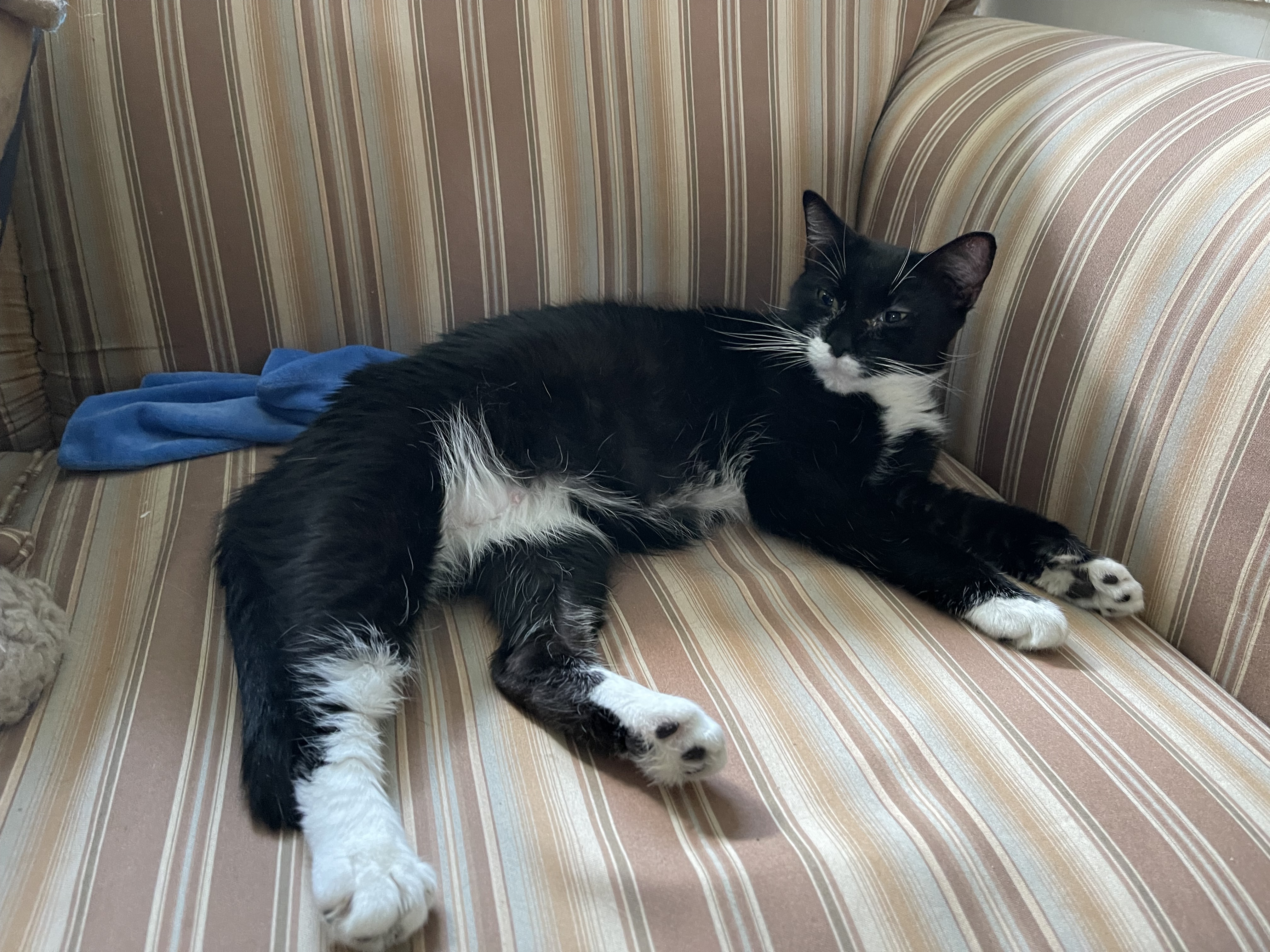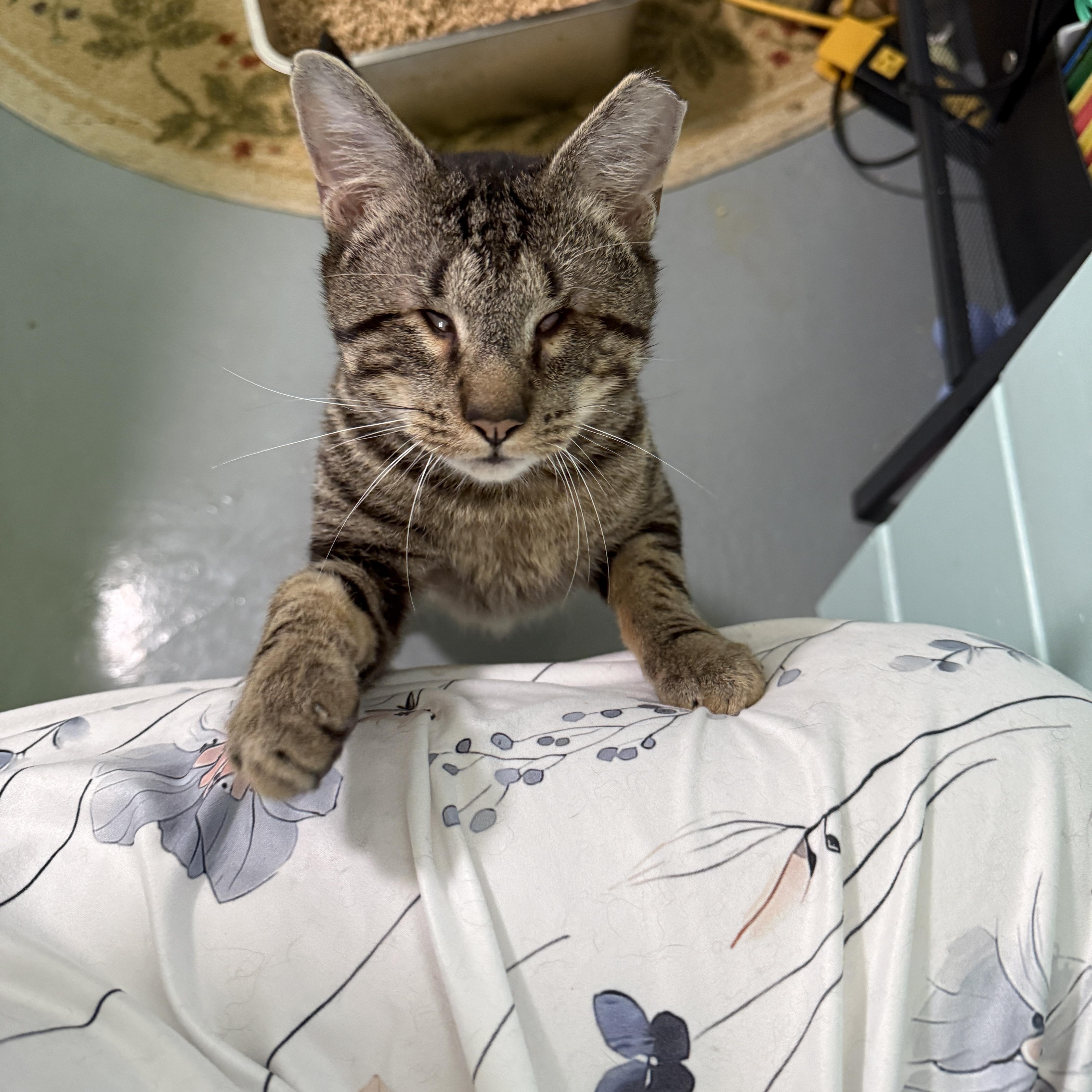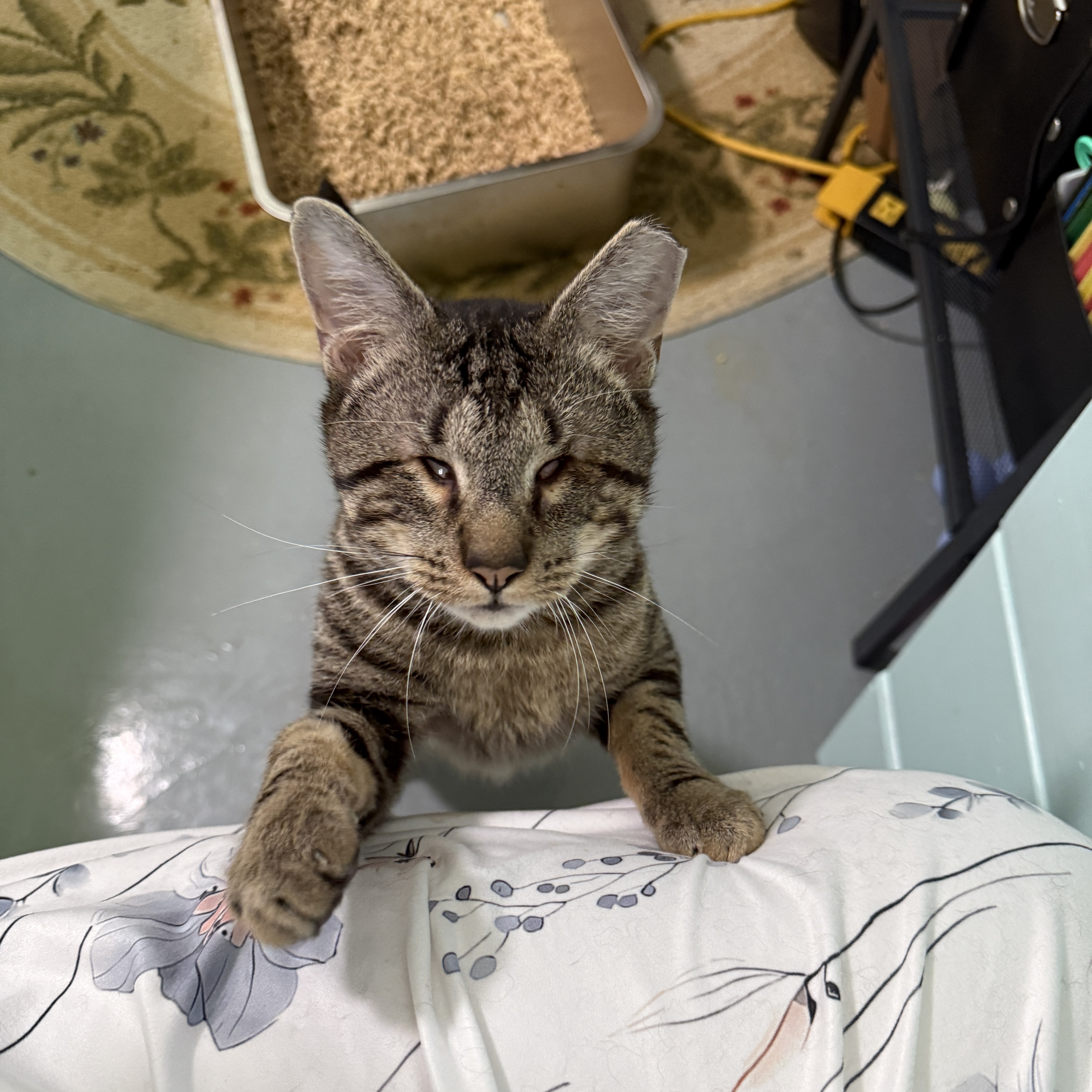 FRIENDLY, NOT GREAT WITH NEW CATS. NEEDS SLOW INTRODUCTION.