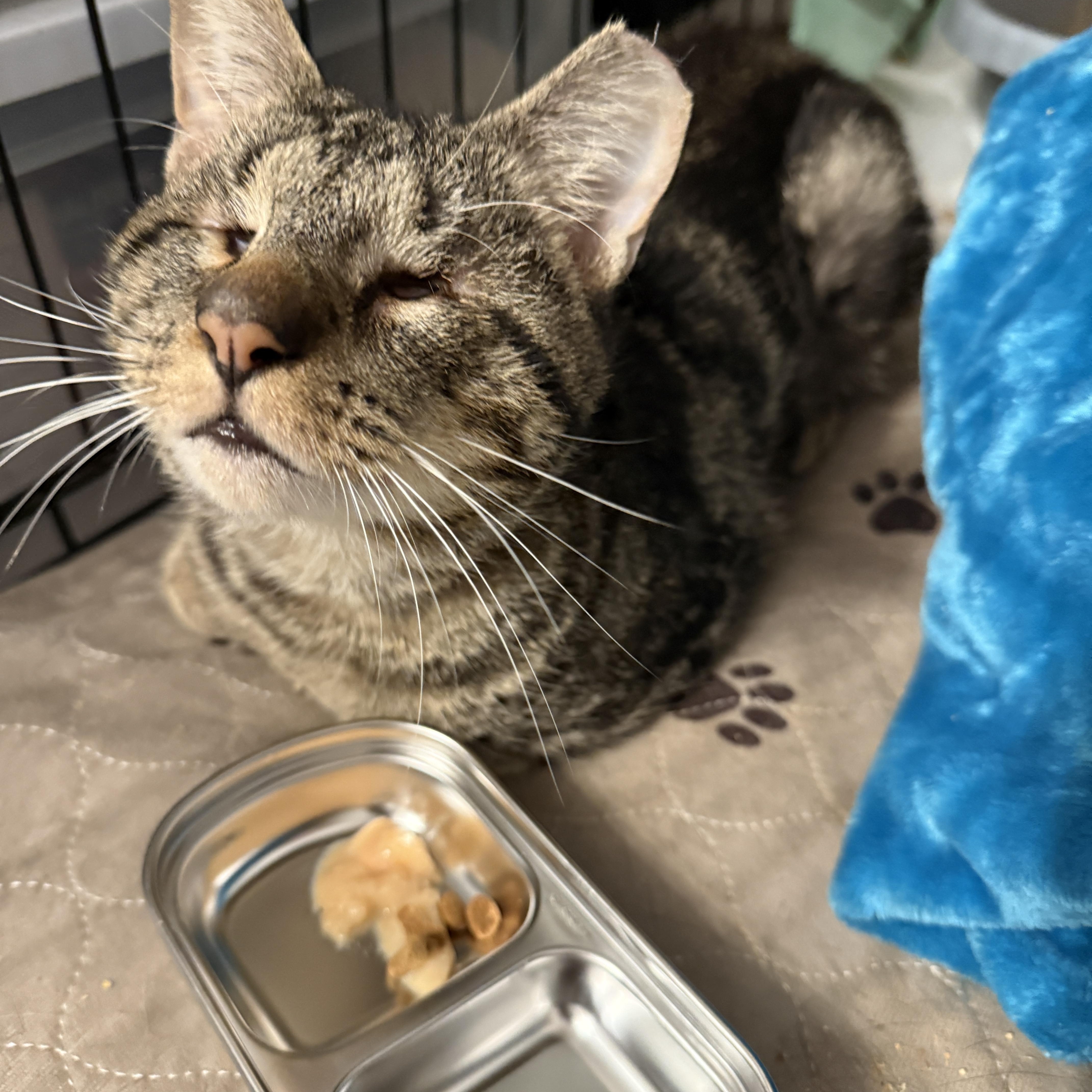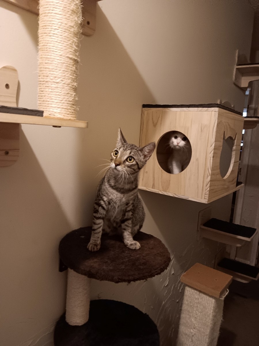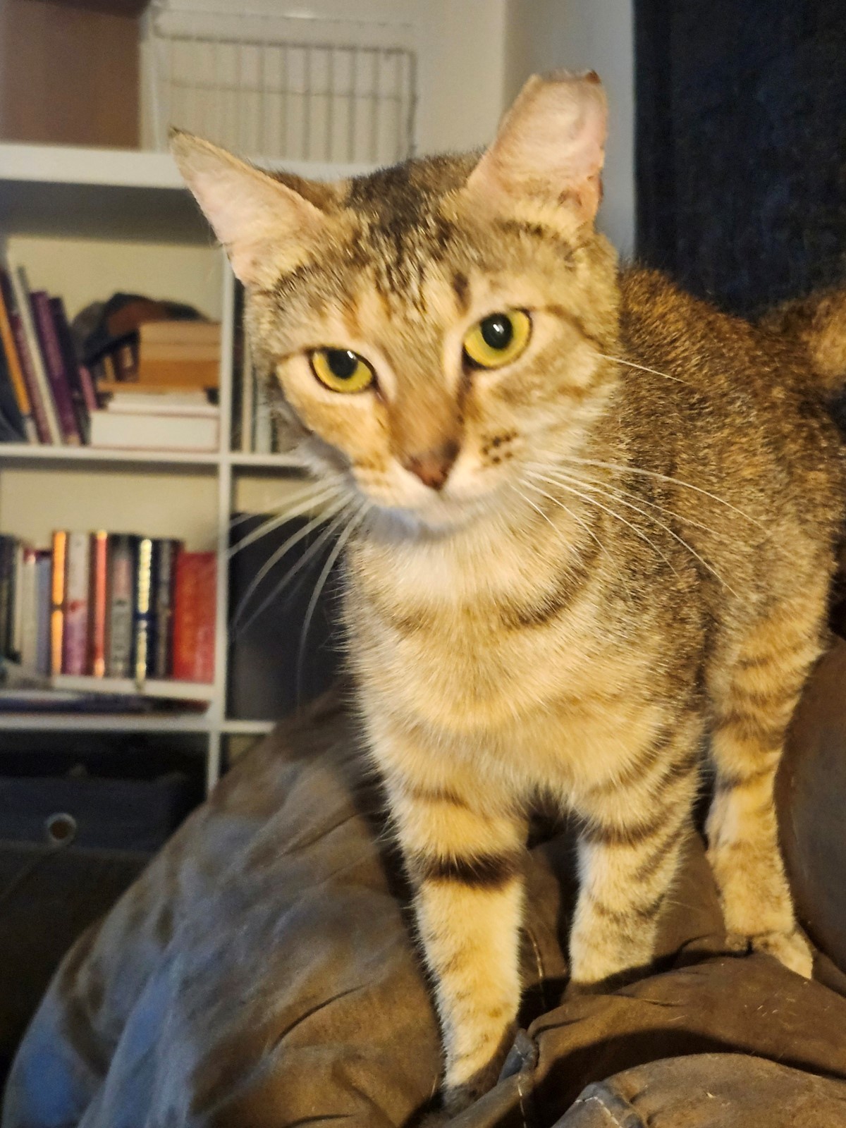 FRIENDLY, NOT GREAT WITH NEW CATS. NEEDS SLOW INTRODUCTION.